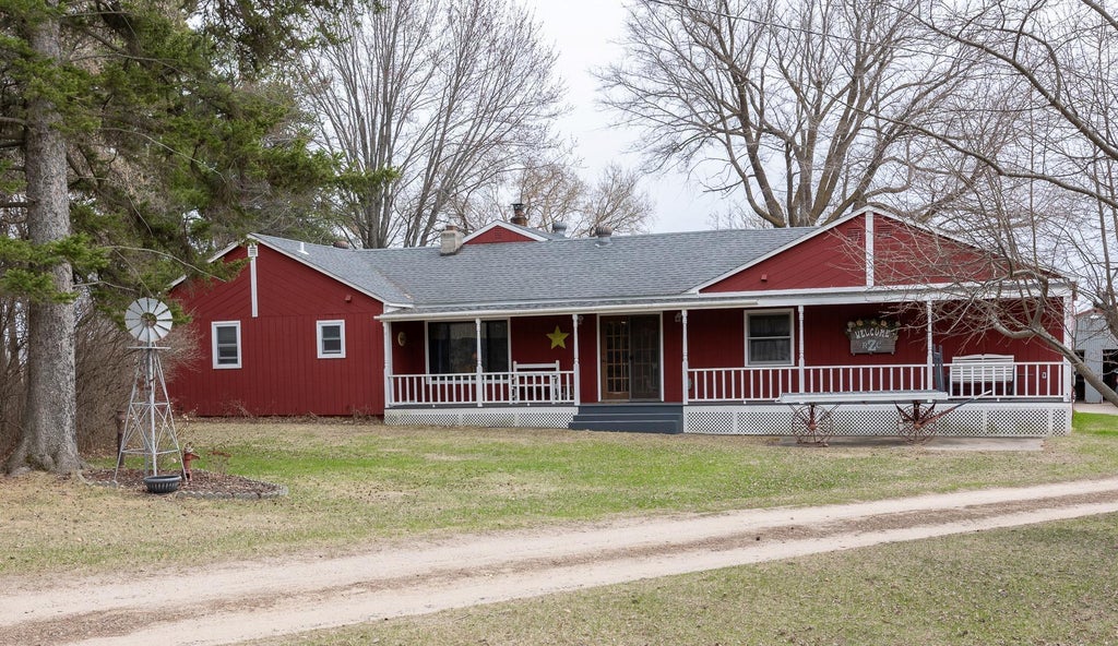 Walden Township - “Country Charmer” - Curb appeal is evident as you pull up to this classic 5BR/2BA pastoral home with an inviting open porch that echoes “coffee time”. The out buildings beckon to a more relaxed lifestyle. The barn is solid along with a machine shed, garage and numerous utility buildings. The home’s interior is fully updated and boasts hardwood and plank flooring, custom cabinets/island, a sprawling primary bedroom, a main floor utility room, large entry, partial basement and a huge second floor family room. This property is a literal “Hallmark” movie in the making!
