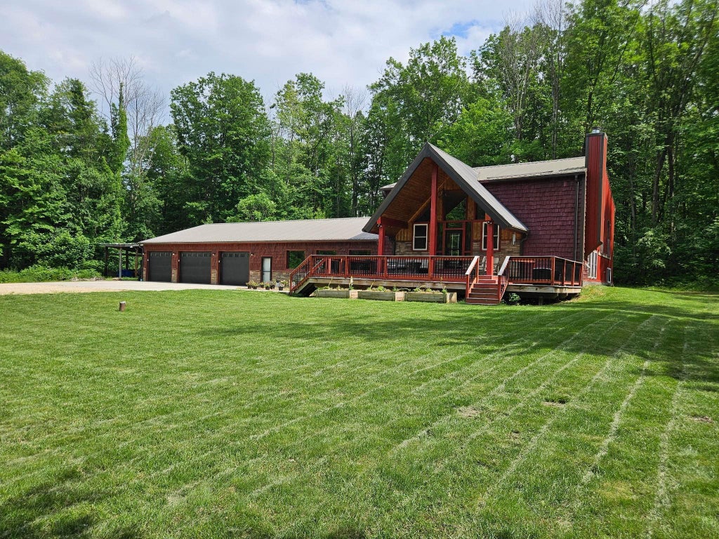 ASSUMABLE MORTGAGE WITH LOW INTEREST RATE to qualifying veterans! Rustic & charming home on private ~20 wooded acres. This property is a private hunting/recreational paradise full of possibilities right out your back door! This home is centered around natural beauty offering warmth & authenticity, creating an inviting haven in the woods! Rich, natural wood finishes, wood fireplace, reclaimed wide-plank wood flooring, solid slate flooring, unobstructed windows that flood the space w/ natural light all showcase the beauty of rustic elements, creating cabin-like ambiance. Home features a voluminous layout, spacious bedrooms, master ensuite with walk-in tile shower, in-floor heat, wet bar, large (32x40) heated garage, &covered cedar front porch. You are sure to enjoy the beautiful kitchen that offers commercial-grade appliances, tons of storage and counter space. Other great highlights: metal roof & siding, tankless water heater, & the property is close to the interstate for easy commute.