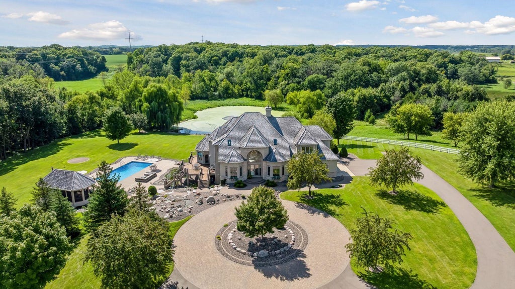 The one-of-a-kind dreamy estate that you have been waiting for! Private serene retreat set upon a fairy tale setting. Over 13 acres of rolling hills and pasture, with long gated circular driveway, two ponds with fountains, waterfalls, creek, saltwater pool, pool house, horse stables & indoor arena, guest house in barn, and multiple heated garages. Open concept floor plan with walls of windows fill the home with natural light! Exceptional room sizes. This property is an entertainer’s delight! Updates everywhere you look. Each room has a purpose and is filled with character, excellent craftsmanship, and attention to detail! Meticulously maintained, the condition will impress, and pride of ownership shines! Primary en suite features a full bathroom with separate tub & shower, two walk-in closets, and private balcony. All three upper bedrooms have en suite bathrooms. Appreciate the grand foyer, over 20-foot ceiling, Viking appliances, home control systems for lighting / music / security, reverse osmosis, spancrete, epoxied garage, massive garage doors, generator, and so much more! The property has 4 kitchens, 7 bedrooms, 10 bathrooms, and endless garage space. The home is a two-story walkout with 2 kitchens, 6 bedrooms, 6 bathrooms, and 2 sets of laundry machines upstairs. The pool house has 1 bathroom. The barn has an additional 2,088 finished square feet, 2 kitchens, 1 bedroom, 3 bathrooms, plus laundry. Barn is insulated and has in-floor heat. Finished garages in house and barn not photographed. Amazing outdoor spaces with the most picturesque views. Manicured lawn with beautiful landscaping and lighting. Luxury living at its finest!