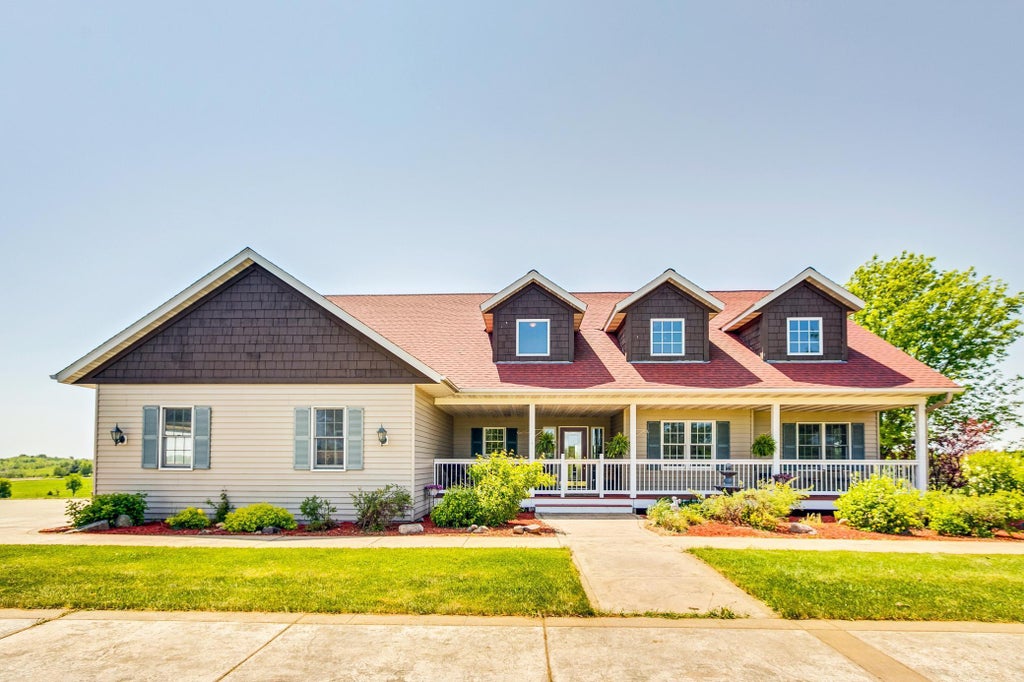 Rustic charm meets modern convenience in this beautifully updated property. The main living area features rich hardwood floors, a cozy gas fireplace, spacious bedrooms, and a formal dining room that’s perfect for gatherings. The home radiates warmth and comfort throughout. The primary bedroom offers a vaulted ceiling, a luxurious en-suite bath with a jacuzzi, a walk-in closet, and a private deck for quiet moments. The upstairs kitchen has been completely remodeled, blending modern style with functional design. Step outside to enjoy the peaceful surroundings from the wrap-around front porch or relax on the back deck. The property includes a balance of wooded and open land, ideal for recreation, agriculture, or leisure. A four-stall horse barn is ready for equestrian use, and a large multi-bay machine shed provides ample space for equipment or hobbies. The basement has been fully remodeled and now includes two brand-new bathrooms, one bedroom, a kitchenette, a separate laundry area, a sauna, and a workout space. This area has its own entrance, making it perfect for guests or extended stays. This exceptional property offers the ultimate rural lifestyle—comfort, versatility, and timeless appeal.