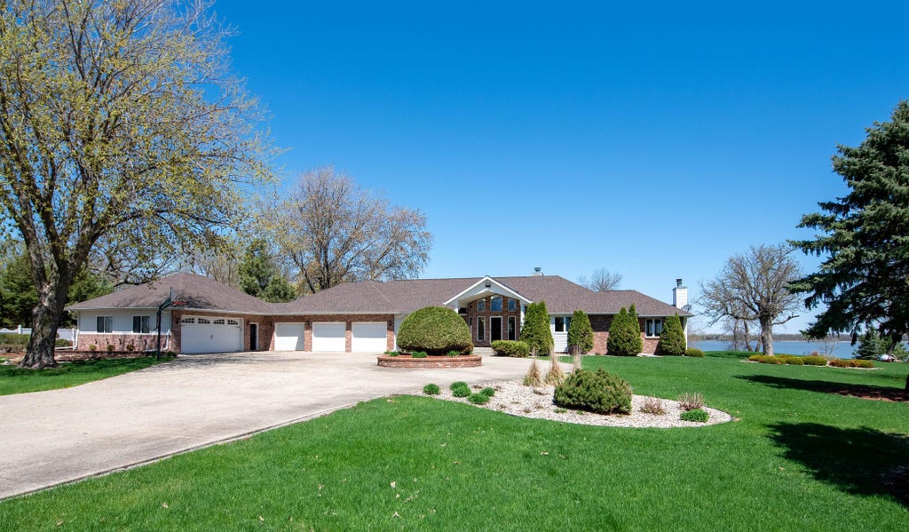 Breathtaking lake home with over 300' of lakeshore on Loon Lake, Lake Crystal. 6 bedrooms, 3 1/2 baths, 2 fireplaces and 4,000 sq. ft. of living area. 3 season porch with knotty pine, screen-in porch and patio. Grand entry with vaulted ceiling, formal living room with gas fireplace, 1/2 bath, mud room off garage, family room with wet bar and 3 sided fireplace. Kitchen with snack bar, built-in range, formal dining room with oak surrounds and carpet inlay. Master bedroom with corner fireplace & TV insert and possible private deck. Private bath with air jet tub with large master walk-in closet. 2 more bedrooms, one more full bath and main floor laundry. Basement has has 3 bedrooms with full egress windows, full bath and family room, as well as a rec room. Walk-in storage area, triple attached garage, additional garage for additional cars or workshop. Lots of room!
