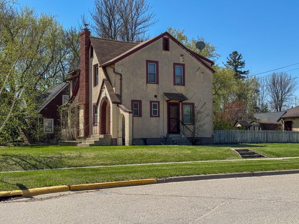This Tudor-style arch home exudes personality. The spacious 3 bedroom, 2 bath, historical home, has original maple hardwood floors and a cozy, wood burning fireplace insert. It is located on a corner lot and has a detached garage as well as a garden shed. A remodel of the basement has been started, giving it the potential to become two more bedrooms, an office or even an apartment for rental income. Main and upper level are in need of repairs as well. Bring your tools and earn some sweat equity!!!!