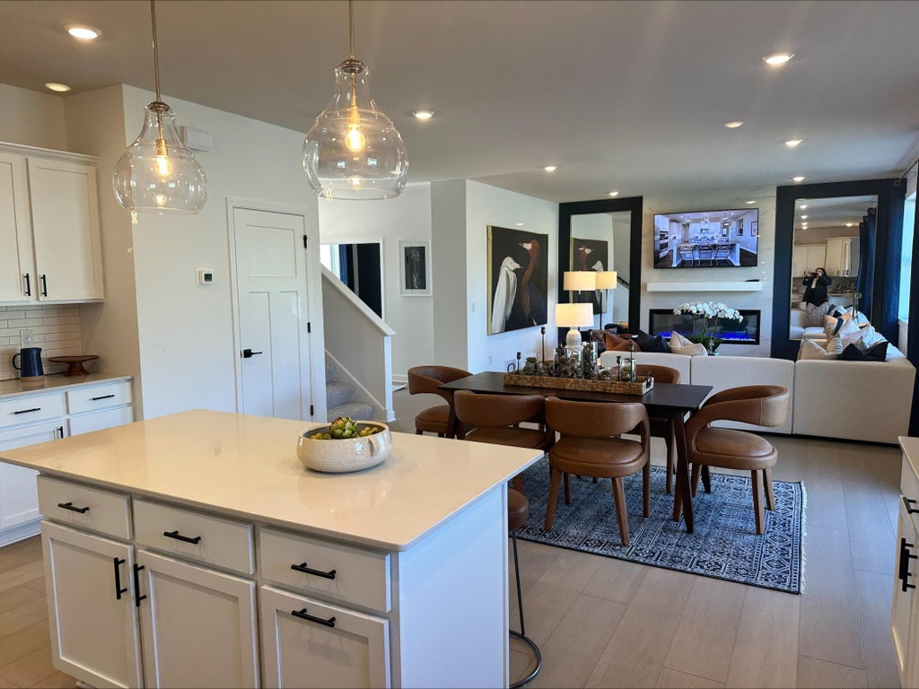 This home is the model, not for sale. Welcome to the BRAND NEW Meadows of Otsego! The Bristol home boasts a standout kitchen featuring three walls of cabinetry with hardware, a stunning backsplash, and abundant storage, including a spacious walk-in pantry. Cozy up by the electric fireplace in the great room, perfect for relaxing evenings. Upstairs, you'll find four well-appointed bedrooms and two linen closets, ensuring ample space and storage for the whole family. The exterior is equally impressive, with sod, irrigation, trees, and front yard landscaping all included. Nestled in the peaceful town of Otsego, this home offers tranquility while keeping you close to conveniences. This community is HOA free!