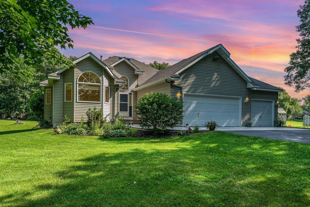 Set on a peaceful, tree-lined acreage, this stunning Ham Lake home offers the perfect blend of privacy, comfort, and modern convenience. The attractive curb appeal welcomes you with mature landscaping, a spacious heated 3-car garage, and a well-maintained exterior. New carpet installed 2025 along with newly refurbished hardwood floors in entryway Inside, you’ll find a bright and inviting living room with large windows that bring in natural light and picturesque wooded views. The vaulted ceilings and updated recessed lighting enhance the open and airy feel of the main living space. Lights throughout the home are on dimmer switches and mostly LED. The spacious kitchen is a cook’s dream—featuring white cabinetry, a center island with new granite counters and ample prep space, and eye-catching blue mosaic tile backsplash. Black appliances and updated pendant lighting add a modern touch to this functional layout. Step out onto the backyard deck and patio—perfect for relaxing or entertaining—while enjoying tranquil views of your private, wooded surroundings. Enjoy the beauty of nature from every angle while living just minutes from local amenities. Whether you're hosting guests or savoring a quiet evening, this home delivers comfort inside and out.