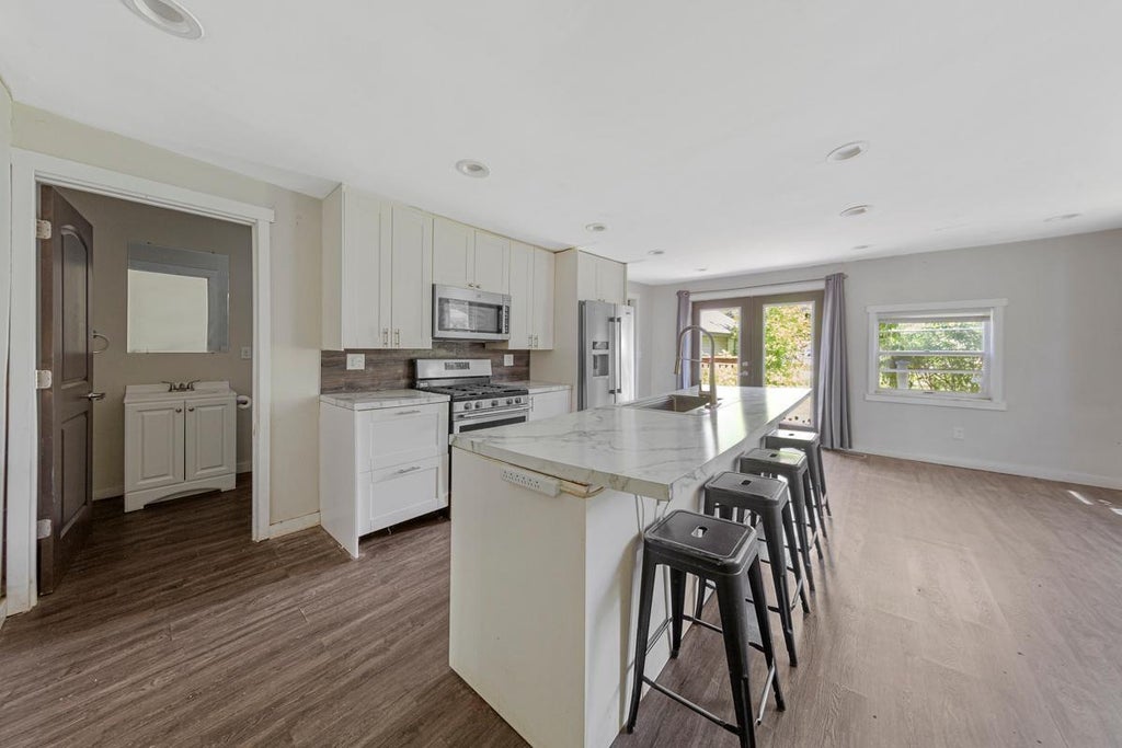 This property is a perfect FIXER-UP with endless potential! Whether you're an investor or a buyer ready to add your personal touch, this home offers great value and opportunity. The main level welcomes you with a inviting living room, a guest bedroom, a full bathroom, and a thoughtfully designed kitchen featuring casual dining areas. At the heart of the kitchen, a sliding patio door opens to a spacious deck. Just beyond the kitchen, you'll find a mudroom that could easily serve as a future laundry room. A semi-open staircase leads to the upper level, where the Primary Suite completed with a separate shower and a relaxing soaker tub. Two additional bedrooms and another full bathroom complete the upstairs layout. Topping it all off is an oversized 3+ car attached garage, perfect for vehicles, workshop space, or hobbies.