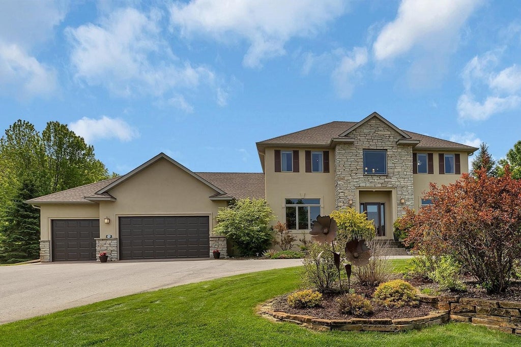 This stunning two-story home in the desirable Walden Woods neighborhood sits on over an acre with a massive, flat backyard featuring a wooded backdrop, and walking trails leading to a nearby park. Inside, the main floor boasts 9-foot ceilings, refinished hardwood floors, expansive windows with transoms, and a spacious laundry/mudroom. The kitchen offers multi-toned cabinetry, a granite-topped island, and stainless steel appliances, while both formal and informal dining areas provide flexibility for entertaining. The main floor also includes a dedicated office with built-in desk and a fireplace, plus two half baths. Upstairs are four bedrooms, including a luxurious primary suite with dual vanities, an updated tile shower, and a jetted tub. The finished basement features the fifth bedroom, a large family room, and a separate theater room, making this home perfect for comfortable living and entertaining. Recent updates include a new furnace, new air conditioner, new air exchanger, new water heater, new driveway, new shingles, new gutters, and new garage doors! The oversized, heated three-stall garage, screen porch with grilling deck, large stained concrete patio, hot tub, and storage shed enhance the outdoor living experience.
