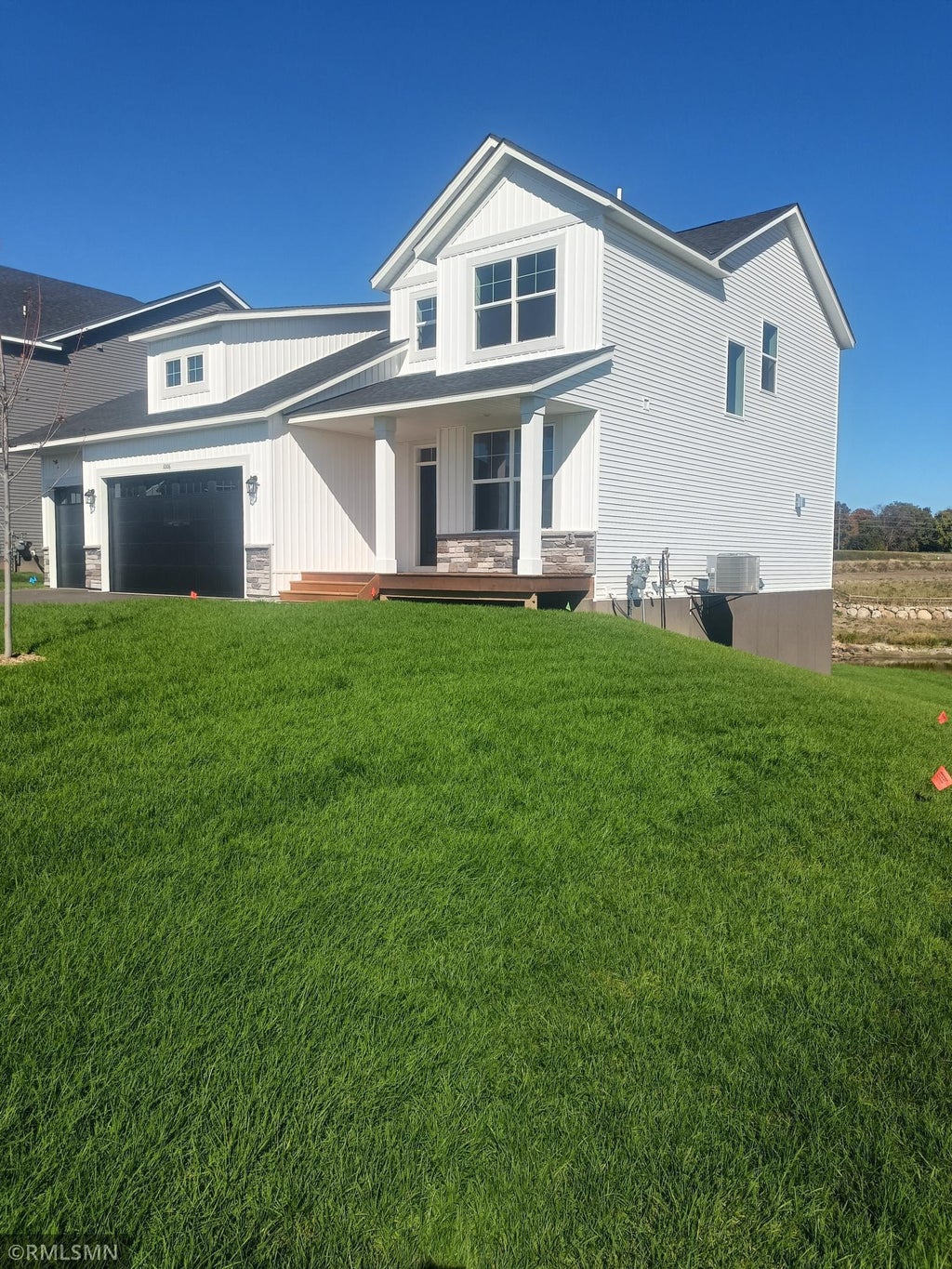 Beautiful lot with private backyard! This beautiful 2 story features three finished levels! A welcoming front porch and large foyer leads you into this clean lined and open concept floor plan. Oversized windows fill the home with natural light, the spacious kitchen has loads of shining stone countertop & cabinet space with an island and walk in pantry. Ceramic tile backsplash in the kitchen brightens the space farther and all kitchen appliances are included. Rounding out the main level is a convenient mudroom with a built-in bench and 1/2 bath next to the kitchen/garage entry and a great flex room at the front of the home. Upstairs, you will find 4 Bedrooms including the large and luxurious master bedroom suite with vaulted ceiling and a well placed laundry room. The family room in the finished walkout basement is HUGE. The family room is joined by an additional bedroom and bathroom and provides plenty of spaces for your family to hang out separately or together. Sod and inground sprinkler are also included.