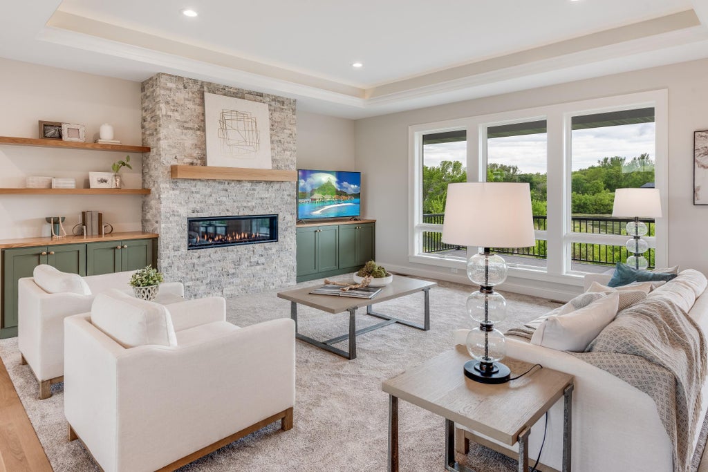 This breathtaking new construction home is perfectly positioned on a sprawling 6-acre lot on the border of Dayton & Rogers! This stunning rambler offers a thoughtfully designed open layout that exudes both comfort and elegance and is loaded with features throughout. From the beautiful white oak flooring to the tiled bathrooms showcasing gorgeous accent walls, this home is meant to impress everyone that sees it. The heart of the home is the dream kitchen, complete with an oversized walk-in pantry, a massive center island and naturally stained white oak cabinets. It is the ideal space for entertaining and daily living alike. The luxurious owner's suite includes stone-tiled flooring, a spa-like ensuite, and private access to a massive 40 x 12 covered porch—perfect for enjoying the serene pond water views year-round. The oversized family room in the lower level is a true showstopper, featuring a wet bar that makes it an entertainer’s paradise. With its blend of modern amenities and timeless style, this home is your opportunity to experience unparalleled craftsmanship in a peaceful, picturesque setting.
