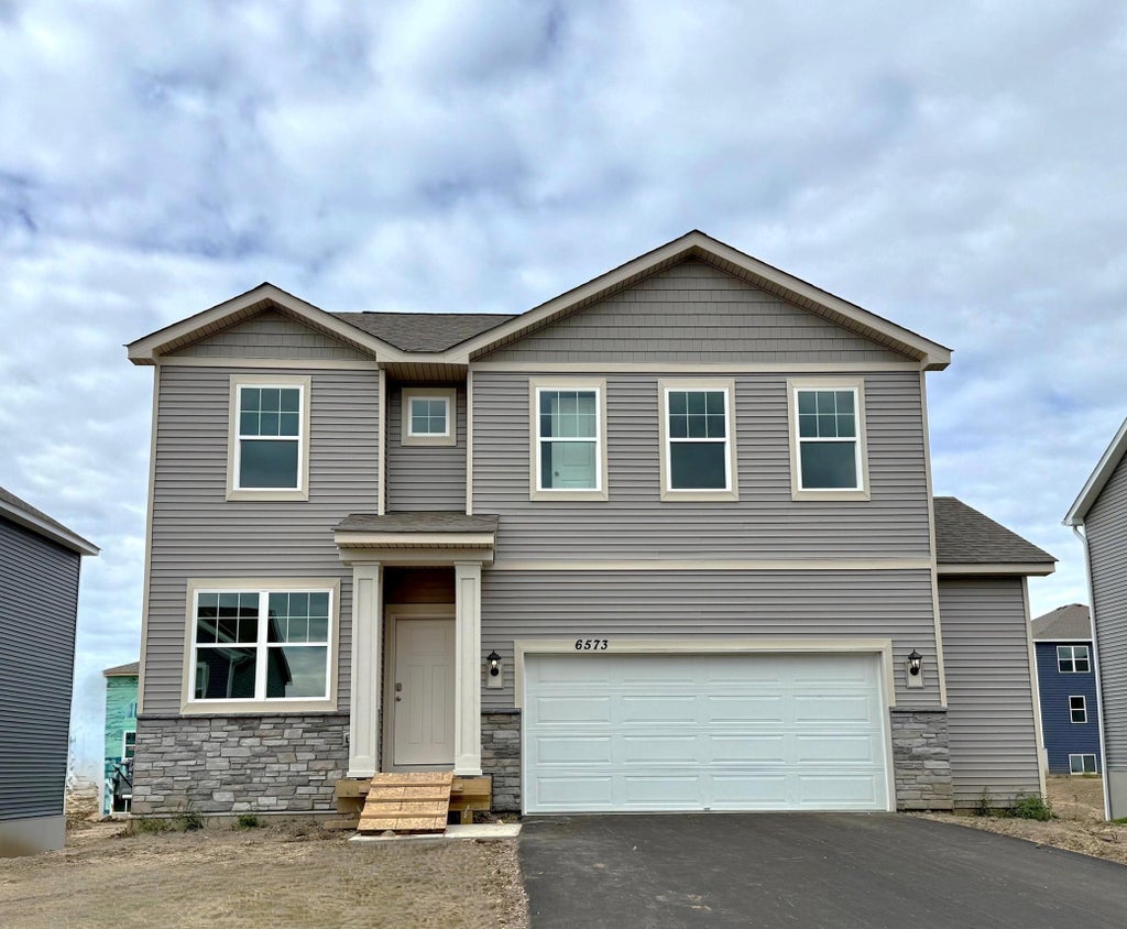 Ask how you can receive a 4.99% Government or 5.50% Conventional 30 yr fixed rate mortgage PLUS a reduced interest rate by 1% for the first year AND up to $5,000 in closing costs on this home! Welcome to the Holcombe! This fantastic home boasts 4 bedrooms and a loft on one level and has an unfinished lookout basement. Main level is bright with a wonderful kitchen showcasing an island, stainless steel appliances and white quartz countertops. Other desired features in the kitchen would be the microwave with a hood that vents to the exterior and an island as well as large, corner pantry! The primary ensuite is a dream, with a large walk-in closet. Industry leading SmartHome technology included in all our homes. You'll find walking trails that wind you through the neighborhood past the soccer fields, the ponds, the community park & even up into the Farmington HS! Great location, within minutes of restaurants & shopping & right between downtown Farmington & Lakeville! Just minutes to Cedar or I35! This community is a gem!