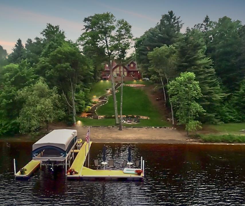 75 feet of pristine sandy beach. Located on the serene shores of South Bellhorn Bay, this 1.5-story lake home offers picturesque, north-facing water views and a peaceful retreat for everyday living or weekend escapes. With 5 spacious bedrooms and 3 beautifully tiled bathrooms spread across 3,683 square feet, there’s room for everyone—plus a few guests who decide not to leave. Rich hickory cabinetry and classic six-panel doors add warmth and charm, while a high-efficiency wood fireplace invites cozy evenings by the fire. The open main floor layout is perfect for gathering, whether you're enjoying breakfast with a sunrise or winding down after a day on the water. The primary bedroom is conveniently located on the main level, providing comfort and ease of access. Step outside to an expansive maintenance-free deck ideal for grilling, relaxing, or simply soaking in the lakeside ambiance. Professionally landscaped grounds lead to 65 feet of sandy shoreline—perfect for swimming, launching a kayak, or just burying your toes while you unwind. It’s one of the best spots on Big Sandy, and once you sit by the shore and take in the views, you’ll understand why. Whether you're dreaming of year-round living or a seasonal getaway, this home delivers a rare combination of comfort, space, and nature. Just be prepared—guests may “accidentally” leave their bags in the entryway.Newer Floe Dock and Maxis 10,000 lb boat lift with 30 ft canopy included.
