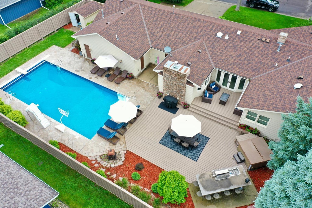 This beautifully maintained 4-bedroom, 4-bathroom home has so much to offer in a prime location near Olivia Golf Club and BOLD High School. The well designed home boasts a modern kitchen with a gas stovetop, double oven, and an adjacent dining room that walks out to the backyard & hearth room warmed by a cozy gas fireplace — perfect for gathering and relaxing. The oversized main-floor primary suite is complete with a walk-in closet, separate tub & shower. The main level has 3 bedrooms in all and an additional full bathroom. Downstairs, the fully finished lower level is an entertainer’s dream, with a wet bar, pool table, exercise room, family room, steam shower, 4th bedroom, office, and plenty of storage space. Outside, enjoy your backyard oasis with an in-ground pool featuring a slide & diving board, hot tub, outdoor gas grill, beautiful landscaping, storage shed and a convenient 3/4 bath and bonus laundry to make pool day cleanup a breeze. The 4-stall heated and finished garage provides ample space for vehicles, toys, a workshop and more. With warm days in mind, this property is a dream. Be sure to take the virtual tour for a better idea of the layout and schedule your private tour today!