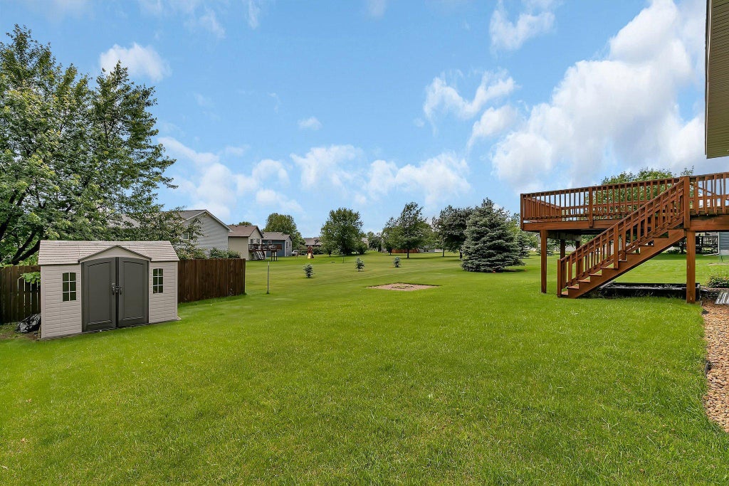 Welcome to this well-cared-for 3-bedroom, 2-bathroom home offering comfort, space, and style in every corner. Step into the open foyer and be greeted by an abundance of natural light that flows throughout the home. The upper level boasts a bright and inviting living space, and a large dining area that opens to a generous 16x14 deck—perfect for outdoor entertaining or relaxing evenings. You'll love the spacious walk-in closet in the master bedroom, while the lower level features a cozy family room complete with a wet bar area, perfect for hosting guests. The oversized laundry room offers additional flexibility, storage, and convenience. Additional highlights include an insulated and heated 2-stall garage, a nice backyard with a storage shed, and a thoughtfully designed layout with plenty of storage throughout. Recent updates such as a 1-year old roof, newer carpet, and a newer concrete driveway add to the home's appeal and value. This home is ready for you to move in and make it your own!