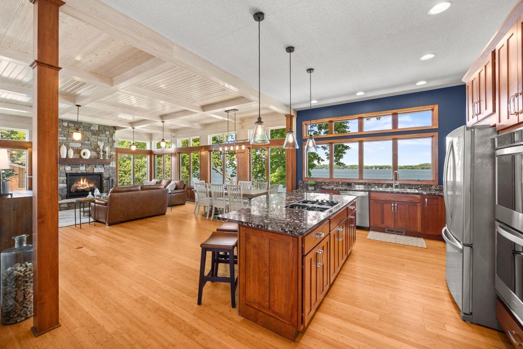 Stunning Craftsman home on Lake Washington with channel access to Lake Stella, two of the premier lakes in Meeker County and just an hour west of the Twin Cities. Perfect for relaxation and entertaining and ideal for boating, sailing, fishing, and year-round enjoyment. This beautiful property features 4 bedrooms and 3 bathrooms, showcasing exquisite mission-style millwork, 10-foot ceilings, and oversized windows with transoms offering panoramic lake views. The main level features beautiful bamboo hardwood floors and a new stone fireplace in the living room. The gourmet kitchen boasts amazing views, stainless steel appliances and large center island. The lower level offers a spacious family room area perfect for entertaining. Additional highlights include a steam room in the lower-level bathroom, a covered front porch, finished garage with epoxy floor, two maintenance free decks facing the lake, and a screened porch with a hot tub. The in-ground sprinkler system ensures a lush landscape and lawn all season long and to top it all off, a lakeside waterfall ensuring peace and tranquility. Need a break from the lake, there are multiple restaurants and a winery just minutes away. Don’t wait to begin a lifetime of memories at Lake Washington!