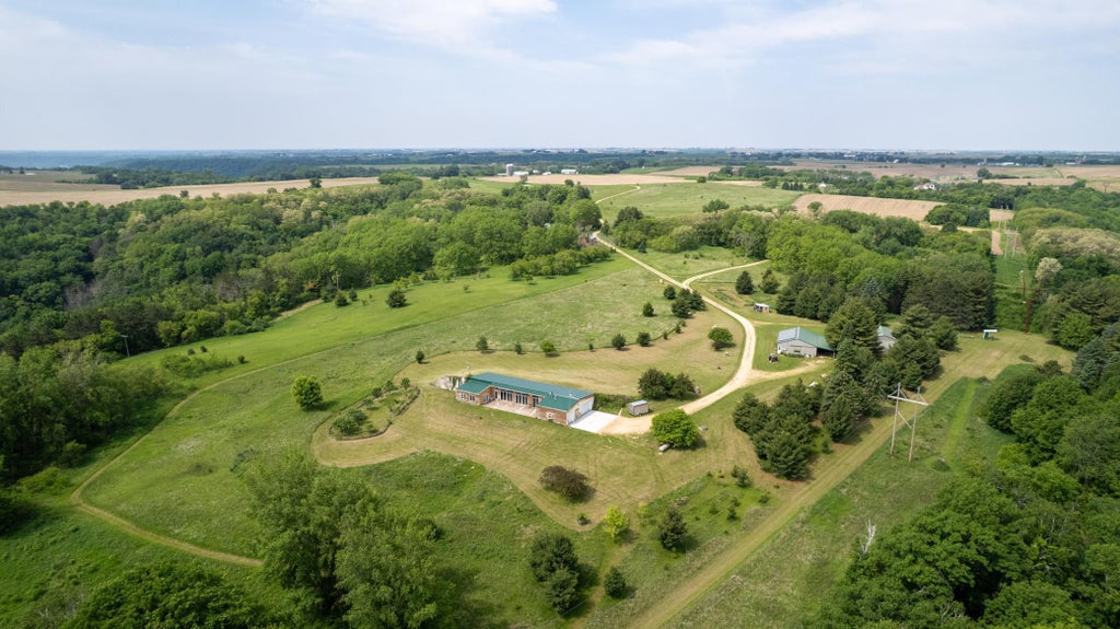 This unique underground/berm-style home, nestled on 29.5 acres in Wabasha, offers the perfect blend of privacy, natural beauty, and self-sufficiency. Featuring 2 bedrooms and 2 bathrooms, an open and spacious layout, the home is designed with both comfort and functionality in mind. It also includes a vault room, currently staged as an office. The flooring throughout is natural stone, adding to the home's rustic charm and durability. The property is a nature lover’s dream, complete with wooded areas, walking paths, and expansive views of the river and Wisconsin backwaters. The organic orchard boasts 11 established fruit trees-apple, cherry, peach, and pear-while raised garden beds provide ample space for growing your own produce. A large pole barn with electricity and a smaller pole shed add to the property’s practicality, offering plenty of space for storage or projects. Equipped with solar power and an owned well, this home emphasizes sustainability and energy efficiency. Inside, in-floor hot water heat ensures year-round comfort, while powered awnings and A/C provide convenience during the warmer months. Wildlife, including deer, pheasant, and turkey, frequent the property, enhancing its serene, natural ambiance. For those with an appreciation for history, the property also features a Great Depression-era WPA-built earth dam, adding a unique historical element to this one-of-a-kind retreat. Whether you're seeking a tranquil getaway or a self-sufficient lifestyle, this property offers it all.