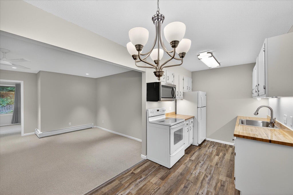 Located on the first level, this spacious unit is move-in ready. Brand new carpet throughout, in August 2025. Fresh coat of paint in June! Newly added recessed lighting and ceiling fan. Updated flooring and counters in kitchen/dining room. Newer wall unit air conditioner in the bedroom. Sale includes one-car garage with storage shelving. Two walk-in closets in the spacious bedroom. The sunroom has large windows overlooking greenery and flowers on the side of the building. Quiet building with friendly neighbors, young and older. Shared patio space and screen porch. Rentals are allowed but pets are not. Plenty of extra parking out in front of the building. This condo is in a wonderful community, across the road from Lake Josephine park, beach, and boat launch. Extremely convenient location near several grocery stores, Target, many restaurants, hardware stores, daycares, the Y, other gyms and coffee shops. Easy access to 694 or Hwy 36. Come check out this beautiful, updated & clean unit!