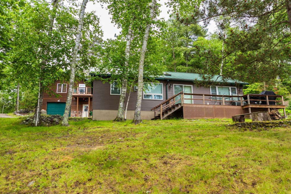 Do not miss this beautiful tree filled property on the highly desirable Lake Vermilion. This nicely updated cabin is conveniently located just minutes from Cook, MN. This property features a 2-bedroom 1 bathroom cabin and a 2-bedroom 1 bathroom bunkhouse above the detached garage. Both spaces have natural woodwork, vaulted ceilings, and kitchens. The cabin has a large deck with beautiful views of the lake and the sun going down. A separate lakeside wood fired sauna and screen porch add to the enjoyment. This lot gradually flows to lake and has 130ft of shoreline. This property comes with the two rolling docks. Most furnishings are included in sale.