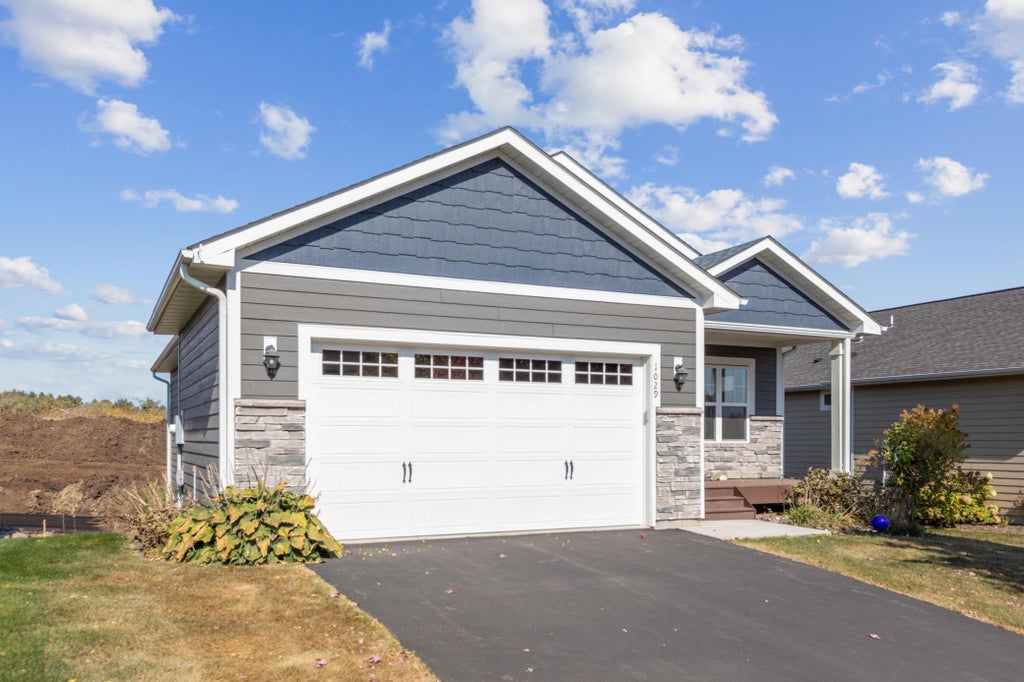This beautifully designed walkout rambler offers a thoughtfully crafted layout, perfect for both everyday one level living and entertaining. The open-concept kitchen, living, and dining areas flow seamlessly into a bright and inviting sunroom, providing the perfect space to relax and unwind. Enjoy the gas fireplace on the main floor in the living room surrounded by gorgeous built ins. The luxurious primary suite boasts a walk-in tiled shower, an oversized walk-in closet with custom organization by Closets By Design, and convenient access to the laundry and mud room. A versatile main-level flex room offers endless possibilities as an office, den, or additional bedroom. The walkout lower level features a spacious family room with a second gas fireplace, two generously sized guest bedrooms, a full bath, and ample storage. Step outside and enjoy scenic walking trails winding through restored wetlands.