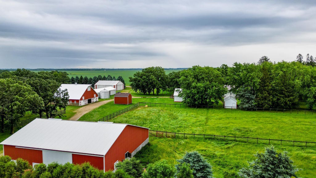 Pretty as a picture, this turnkey country home sits on 10 +- acres 3.7 miles north of I90 and Austin. Nestled in natural wind breaks of Blue Spruce and Pine, you will find four barns, two heated workshops/garages, a pole shed with a dog kennel and run, a Grainery, and six fenced pastures. This fencing is absolutely superior! And in the winter, you will appreciate the heated, automatic Ritchie waterers. This acreage offers many options for use, horses, livestock, 4-H projects, pets, gardening...You name it! The inside is just as charming as the outside, with its natural light, cathedral ceilings, year-round sunroom, spacious covered porch and deck; all with separate living quarters downstairs. There are many updates, including new flooring and paint throughout the home. Amenities include all new mechanicals, new mound system septic, new steel roofs, all property Generac generator, two wells, and a security system. Peaceful, Private, Picturesque, this beautiful property is immaculate and well-maintained----just waiting for you to call it home. Backup offers accepted. Taxes and legal Disc.TBD