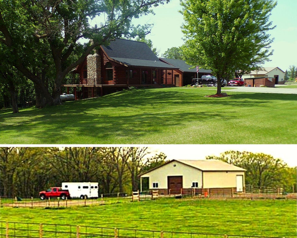 This beautiful 15-acre Hobby Ranch offers a log-sided home with a large, partially covered, wrap-around deck. The vaulted, wood-finished living/dining/kitchen area features a custom stone fireplace. The main floor also includes a bedroom and a full bath. Upstairs, is a large loft area providing multi use space including office and/or a 3rd bedroom with spectacular views. The updated lower level features a walkout family room which could also be used as a 4th bedroom, a brand new 3/4 bath, and a laundry room. The detached 30' x 36' finished and heated three-stall garage/shop is ideal for parking, storage, and gatherings. The newly constructed 36' x 40' steel barn/building is fully finished and heated, featuring 14-foot sidewalls, three horse stalls, a tack room, a wash bay with water, and two 12' x 14' overhead doors. The property includes three separate/connected pasture areas with electric fencing, one pasture is fenced with wood post and steel section fence with solar lights on each post, as well as an outdoor riding/training coral. This building could also be converted to a heated shop and/or storage area. The 15 acres offer ample space for hiking, hunting, and various recreational activities & adventures. This beautiful property is conveniently located just minutes from schools, churches, lakes, and shopping in the Alexandria Lakes Area.