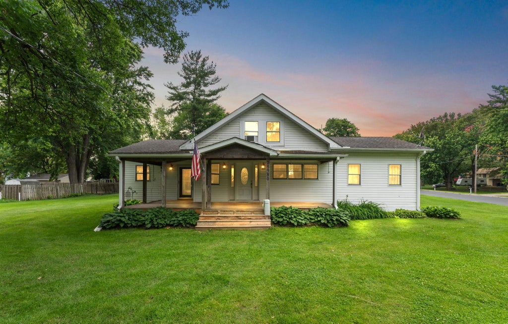 Nestled in the heart of Chisago City, this fantastic home has updates, open space, an oversized .55 acre yard, and close proximity to the area lakes. Enjoy gatherings in the large Great Room, bright and cheerful with multiple windows, vaulted ceiling and electric fireplace. Love cooking? You will love the large kitchen with all the incredible storage with pull-outs, double wall oven, Maytag SS appliances and center island with granite counters and breakfast nook - just add your stools. The sink windows overlook the large front yard and add plenty of natural light. The kitchen opens to the separate dining room. Wonderful built-in buffet is ready for your entertaining and potluck dinners with thoughtfully placed outlets, and storage for all your holiday dishes or corded appliances. Enjoy your coffee on the front porch, just outside the dining room. Spacious Living room has French pocket doors and vaulted ceiling and would make a great home office or additional bedroom, just add your armoire or closet. This room also walks out to the front porch and huge front yard! Large primary bedroom on main has a tall ceiling and walks out to the back deck and patio area. Two walk-in closets w/pocket doors, one which could be made into a bathroom. Great options in the upper level bedroom! Brand new knotty pine finishes make this a welcoming space. Plenty of room for two bedrooms, or an office, hobby room or play area. This home, with large open rooms, is ready for entertaining, and the back yard does not disappoint! Enjoy gatherings on the huge patio or deck area, or sit around the Tiki Bar! This oversized yard is neatly landscaped with hostas and perennials. Fantastic location to enjoy the lakes and local community! Welcome home!