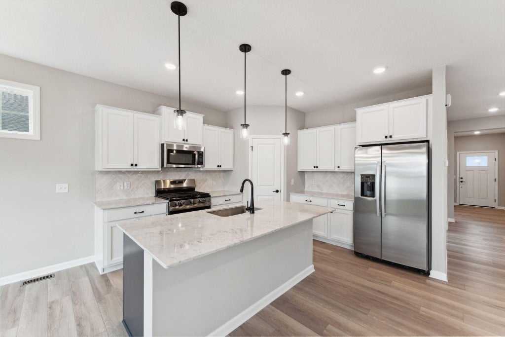 Welcome to 10669 29th Street NE in Saint Michael, MN—a beautifully crafted new construction home that combines modern design, functionality, and comfort. Step inside to discover a spacious single-story layout with 2,283 square feet of thoughtfully designed living space. The open floorplan seamlessly connects the living room, dining area, and kitchen, creating a welcoming space for relaxation and entertaining. The kitchen serves as the centerpiece, featuring a large island that’s perfect for meal prep, casual dining, or gathering with loved ones. This home boasts 3 well-appointed bedrooms and 3 bathrooms, providing ample space for guests or a growing household. The luxurious owner’s suite offers a private retreat, complete with an en-suite bathroom featuring a dual-sink vanity for added convenience. The property also includes a 2-car garage and an accessible single-story layout, enhancing everyday ease. With a neutral color palette and modern finishes throughout, the home is ready for your personal touch to make it uniquely yours.