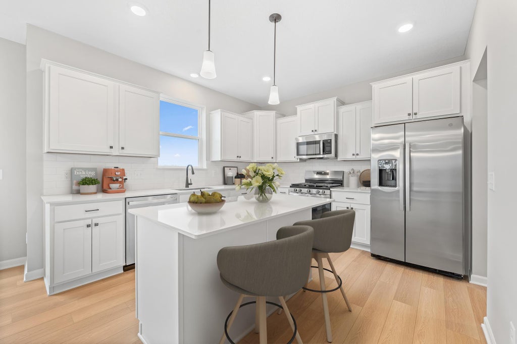 The Dearborn F is a stunning 3-bedroom, 2.5-bathroom home in St Michael, MN. This new construction home offers a modern and inviting space perfect for families and individuals alike. As you step inside, you'll be greeted by an open floorplan that seamlessly connects the living and dining areas, creating a warm and welcoming environment for gatherings and daily living. The spacious kitchen features a center island, providing ample workspace and storage for all your culinary needs. The home boasts an owner's bedroom and en-suite bathroom, complete with a dual-sink vanity, ensuring convenience and privacy for the homeowners. Located in a peaceful and friendly neighborhood, you'll enjoy a sense of community while still having easy access to nearby amenities and major roadways for commuting. Whether you're looking to relax in the tranquility of your backyard or explore the nearby parks and recreation areas, this house offers outdoor opportunities for everyone.