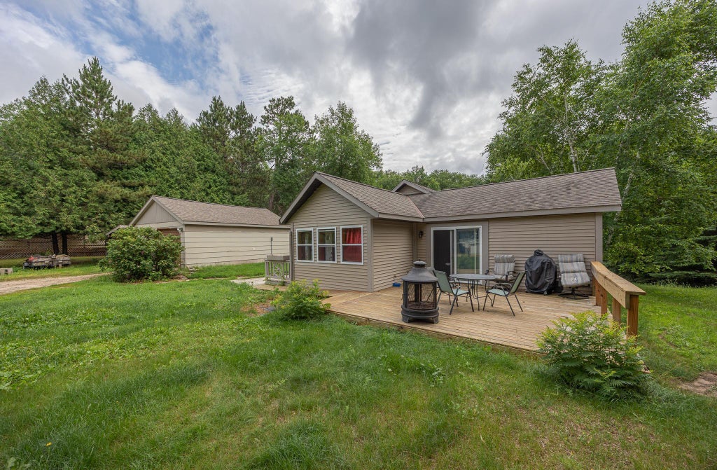Located just a stone’s throw from Big Portage Lake’s public access, this charming reconstructed 2-bedroom, 2-bathroom country home offers peaceful living with thoughtful touches throughout. Step into the kitchen featuring rich hickory cabinets, no-maintenance flooring, and sliding doors that lead to a spacious deck that is perfect for grilling or simply enjoying the fresh air. The cozy living area is anchored by a wood-burning fireplace, adding warmth and charm. The main bedroom is a retreat with its own private deck, vaulted wood ceiling, and en suite bathroom. The lower level is ready for you to finish to your style and needs, offering room to expand. A comfortable and inviting home in a beautiful location near the lake!