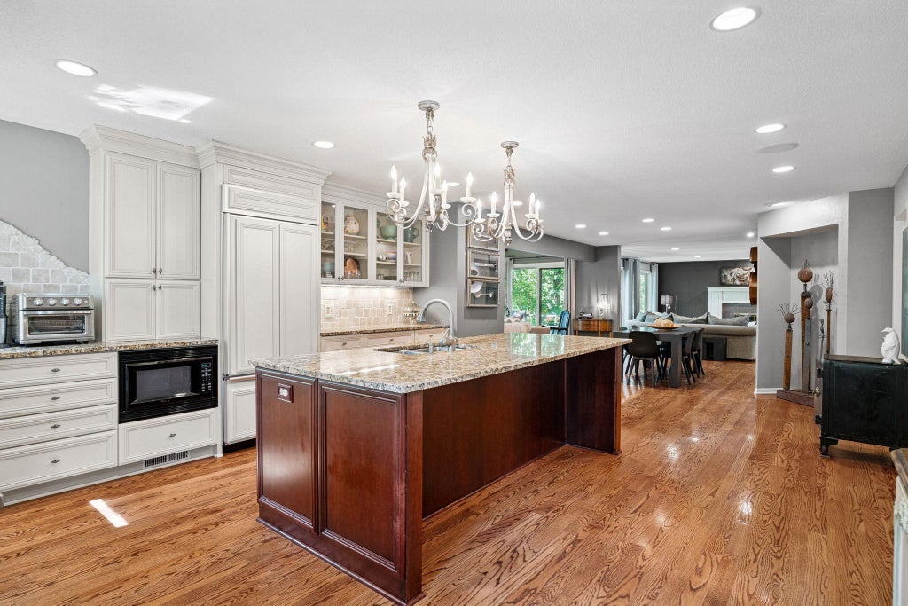 This meticulously maintained Wayzata home is available for the first time in 35 years! The serene calm of this property is accentuated by the thoughtful finishes throughout. Main floor features a home office and open kitchen concept w/ high end appliances & oversized center island, ideal for entertaining. Dining area can easily accommodate a large gathering, with scenic backyard views and multiple fireplace options. The sunroom was added in 2019 and will quickly become your favorite place to relax after a long day! Spacious mudroom, laundry and powder room round out the first floor. Upper level features four generously sized bedrooms. Primary ensuite includes walk-in closet with expertly designed Elfa system to maximize efficiency, and ¾ bathroom. Open loft provides flex space for kids toys, study, relaxation or to harness your yoga skills. Walkout lower level includes large entertainment area, 5th bedroom (currently used as an art studio), bonus office/exercise room, recently built ¾ bathroom and additional storage space. Home has many other thoughtful updates including gutter helmets & heat tape, spectacular front yard fountain & backyard firepit. Located in a quiet neighborhood with convenient access to highways 494 & 394, an extensive trail system & Meadow Neighborhood Park.