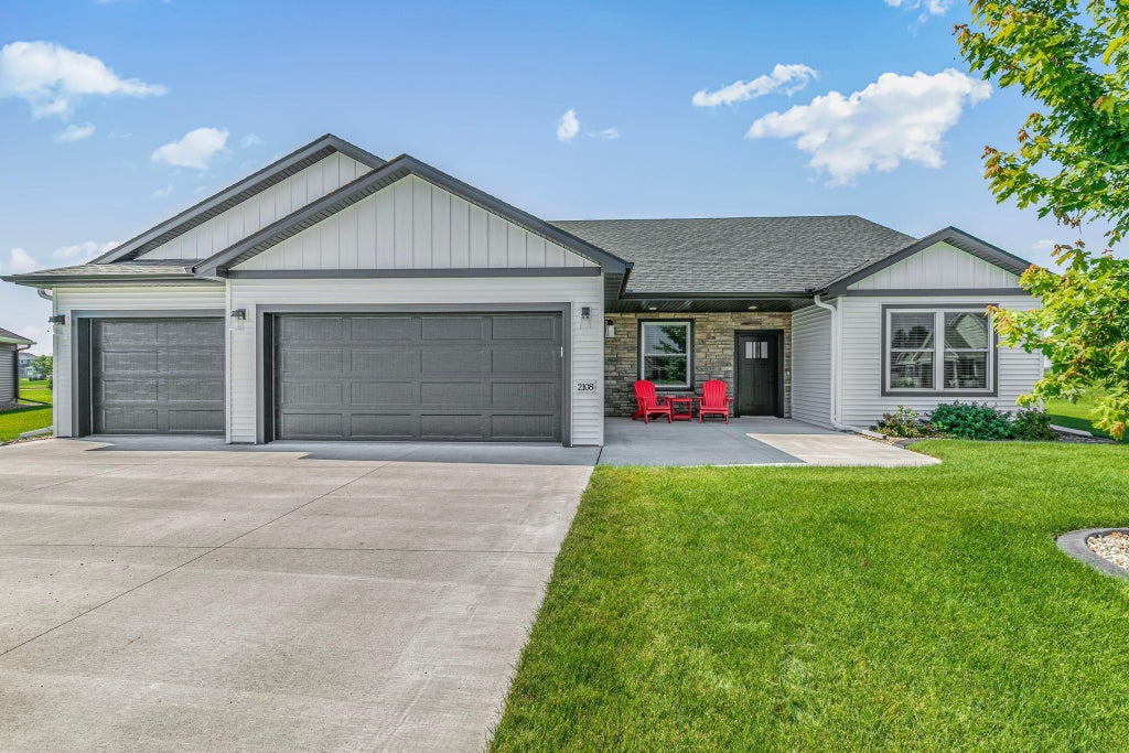 Skip the stairs and settle into comfort—this recently built bungalow style home offers true main floor living on over a half-acre lot with more than $47K in thoughtful updates. With 3 bedrooms, 2 bathrooms, and 9'+ ceilings, the bright, open layout is filled with natural light. The spacious kitchen features stone countertops, custom Rustic Hickory cabinets, a large center island with breakfast bar, and a walk-in pantry. Enjoy the cozy electric fireplace with stone surround in the living room, and step out from the dining area to a large patio with a newly added privacy fence and hot tub. The primary suite includes a private bathroom with double sinks and a walk-in closet. You’ll love the comfort of zoned in-floor heating, forced air, and no interior stairs. The oversized 3-stall attached garage is insulated, has new flooring, and recently added heating—perfect for year-round use. Extras like a 10x20 storage shed, decorative concrete landscape curbing, and new blinds throughout make this home shine. All in a quiet neighborhood with countryside views and just minutes from everything you need.