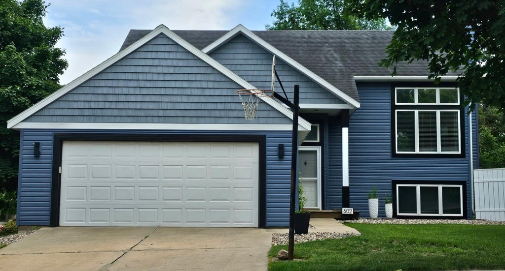 Move-in ready 4 bedroom 2 full baths split entry home on a cul-de-sac and a spacious corner lot. Freshly painted and new carpeting compliment the youthful floor plan and is fully finished. The upper level features a bright, open floor plan with soaring living room ceilings, large windows, laminate flooring, and a wood burning fireplace. Vaulted ceiling in the dining room/kitchen area which has stainless steel appliances, painted cabinetry and many kitchen conveniences. The lower level has a large family room with a free-standing gas fireplace, 2 bedrooms, updated full bath and laundry room/utility room. Fully fenced backyard, newer vinyl siding and a 2-car attached garage. Ready for you!