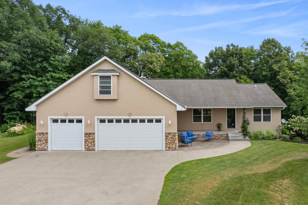 Well-Maintained One-Level Home on the Groundhouse River – First Time on the Market! This beautifully cared-for home features four bedrooms, three bathrooms, and an open, welcoming floor plan. The main level offers vinyl flooring, a spacious kitchen with a center island, a cozy living room with a striking stone fireplace, a dining area, and a primary bedroom with a private deck, a walk-in closet, and an en-suite bathroom. Two additional bedrooms and a full bathroom complete the main floor. Enjoy stunning views from the large back deck overlooking the Groundhouse River—ideal for entertaining. The recently finished walkout lower level adds a huge family room, office, fourth bedroom, and ¾ bathroom. The spacious garage features a bonus room above, perfect for a future man cave or recreation space. This home is energy-efficient, featuring geothermal heating and cooling, which provides year-round comfort and cost savings. Outside, the roundabout driveway offers easy access and adds to the property's curb appeal. An abundance of wildlife can often be seen throughout the beautifully landscaped lot, enhancing the peaceful, retreat-like atmosphere. The property also features a porch, patio, storage shed, chicken coop, and space to park a camper down by the riverfront, all while taking in a fire. Quiet, serene, and surrounded by nature—this rare gem has never been listed before. Don’t miss it!