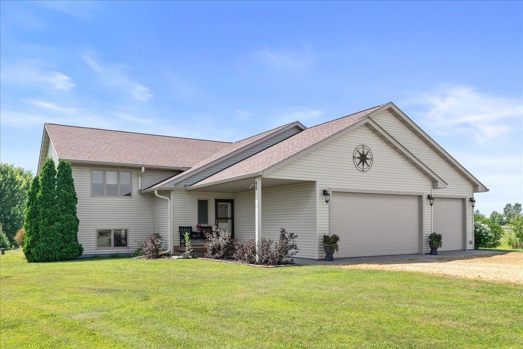 Welcome to this wonderful home nestled on the outskirts of New Richmond, perfectly situated at the end of a quiet cul-de-sac on a dead-end road. Enjoy the peace and privacy of country living with the convenience of town just minutes away. The main level offers a spacious and inviting living room, a bright dining area, and a kitchen with brand new flooring. You'll find three generously sized bedrooms, including a primary bedroom with a private bathroom, plus an additional full bath. The finished walkout lower level features a large family room—perfect for entertaining—along with two more bedrooms, a full bathroom, and laundry area. Step outside to enjoy the beautiful backyard, a gorgeous country setting, and a generous deck overlooking the yard with a patio area beneath—great for relaxing or hosting guests. Top it all off with a finished, heated three-car garage for all your storage and hobby needs. This home has space, functionality, and a setting that’s hard to beat.