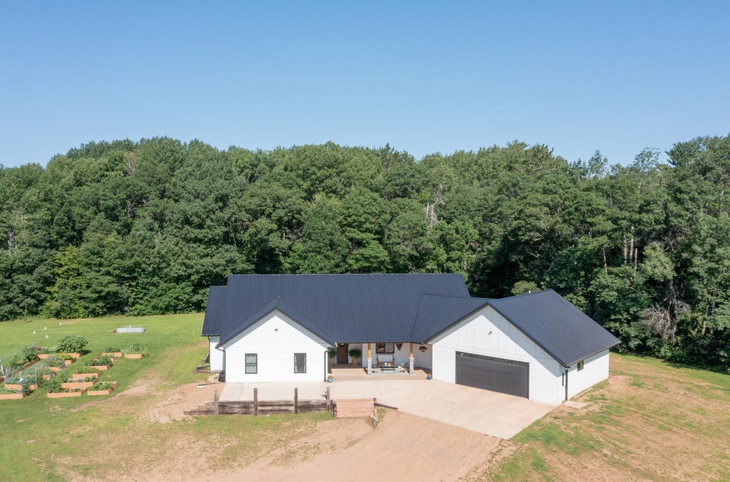 Nestled among 40+ acres, this beautiful home is a must-see! The open floor plan includes 4 bedrooms and 2 bathrooms all conveniently located on the main level. Vaulted ceilings lend to the spacious feel of the living room. The beautiful kitchen, featuring stainless steel appliances, an oversized breakfast bar, and a timeless white porcelain farmhouse-style sink provides a lovely anchoring room of the home. Kitchen also features a large above-sink window with a peaceful view overlooking the front porch. The dining room leads to a 3-season porch, providing a charming place to sit with your morning coffee or a glass of wine in the evenings and watch for sightings of the abundant wildlife that might meander into your yard. Or, relax at the end of the day in the spacious master suite which boasts 2 large walk-in closets, a large soaking tub and double sinks. You’ll love doing laundry in the cheery and oversized laundry room. Basement is currently unfinished and ready for the new owners to make their own with a full bathroom, family room and a bedroom or two with egress windows. Home has zoned in-floor heat and central air. Attached 30x30 heated garage includes floor drains, perfect for washing vehicles or pets! This stunning property provides a mix of woods and open land and is a breath of fresh air! Along with the beautiful scenery and wildlife, there are raised gardens, a fenced horse area, and a chicken coop. Make your dreams come true and come see this charming property and beautiful home today!