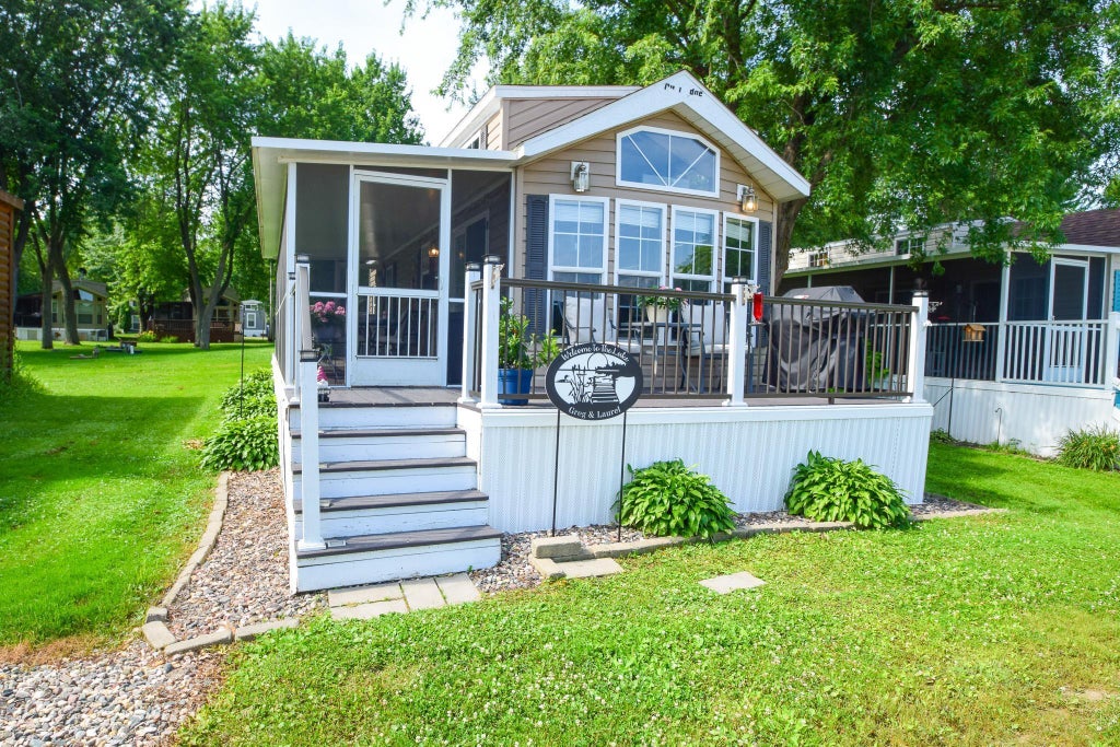 Enjoy low-maintenance lake life in this clean, well-maintained home on the popular Horseshoe Chain of Lakes, offering access to over 15 interconnected lakes perfect for fishing, boating, and recreation. This home is move-in ready and comes fully furnished! Ideally located near the beach, boat slip, and playground. The main level features primary bedroom, full bath, and an open-concept living area with an electric fireplace, functional kitchen with coffee bar, and a dining area. The upper-level loft provides additional sleeping space overlooking the main living area. Step into the oversized screened-in porch and take in the lakeside views, stunning sunsets, and bug-free relaxation. As part of the Horseshoe Shores Association, you'll enjoy the in-ground pool, private beach, dock, boat slip, lawn maintenance, fish cleaning shack, and lodge that can be used for events/parties. The area also offers lakeside and off-lake restaurants, golfing, fishing, a brewery, and more—making it the perfect spot for stress-free, lake living!