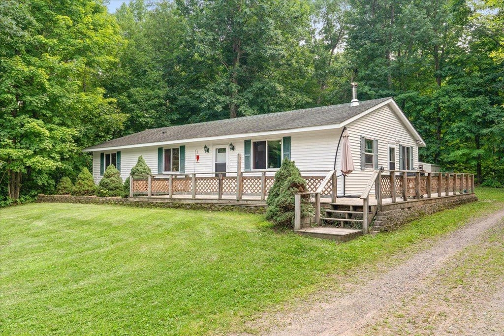 Welcome to 602 E. Round Lake Avenue in Luck, Wisconsin—an inviting, well-built one-level slab on grade home nestled in a peaceful wooded setting just around the corner from beautiful Big Round Lake. This 2011 home offers a smart and flowing open layout connecting the kitchen, dining, and living spaces, with a warm, welcoming feel throughout. The primary suite includes a spacious walk-in style closet, and the home is filled with natural light thanks to abundant JELD-WEN windows. You’ll stay comfortable year-round with efficient gas in-floor heat and the cozy ambiance of a wood-burning stove. In fact, the seller has never used the supplemental electric baseboard heat during their four years here. A wraparound wood deck provides the perfect place to relax or entertain outdoors. The property includes a 94-foot drilled well, a conventional septic system, and sits just about an hour or so from the Twin Cities—making it a fantastic weekend retreat or full-time residence. There's plenty of room on the lot for expansion, gardening, or a future pole barn. Outdoor lovers will appreciate the proximity to some of northwest Wisconsin’s best natural resources. Big Round Lake and many nearby lakes like Pipe, Big Blake, Bone, Big Butternut, and Little Butternut offer excellent fishing and boating opportunities. Just minutes away, public lands such as Straight Lake State Park and the McKenzie Creek Wildlife Area provide access to thousands of acres of public hunting, hiking, and wildlife watching. Whether you're seeking a peaceful primary home or a getaway with unmatched access to lakes and woods, this property offers comfort, quality, and connection to the great outdoors.