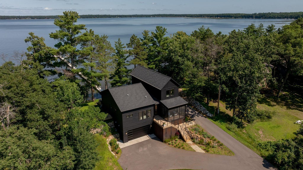 Lake living at its finest here with a picturesque setting on the water's edge of Hubert Lake! This one-of-a-kind custom-built home with attention to detail throughout features a modern design and has an abundance of character and charm! From the moment you walk in you will be greeted with amazing lake views and a wall of 8' tall sliding doors that lead to the lakeside deck! Gourmet kitchen with Wolf & Sub-Zero appliances, beautiful quartz countertops, authentic White Oak hardwood floors, wood burning fireplace in the living room, tiled showers, in-floor heat, main level sunroom and screened in porch ~ you will love this ~ and a must-see lower level with a relaxing family room and wet bar area ~ this is a stunning design and every room is beautiful! Private setting and amazing sunsets will be yours to enjoy here with a great sand beach and dock is included!