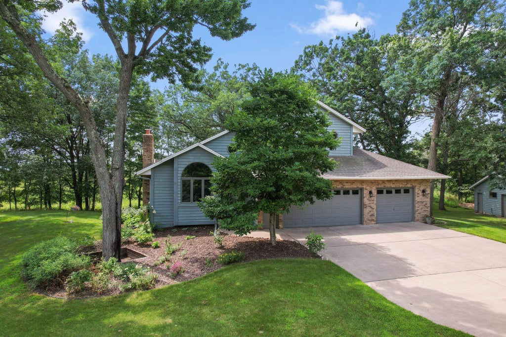 Nestled on a stunning 4.5-acre lot with breathtaking views, this 4-bedroom, 3-bathroom modified two-story home offers the perfect blend of space, comfort, and natural beauty. Enjoy peaceful mornings and evening sunsets overlooking your own private pond and direct access to a serene, unnamed lake—ideal for canoeing, kayaking, or simply relaxing by the water. Inside, the home features a spacious and inviting layout with room for both everyday living and entertaining. The open-concept main level offers a beautiful vaulted main living area, functional kitchen with brand new appliances, and both informal and more formal dining space that maximize the view of the outdoors. The 3 season porch allows you to be surrounded by the beauty of the lot, while being sheltered from the elements. Upstairs, you'll find generously sized bedrooms, including an updated primary bath, and a "reading loft" for quiet contemplation. The lower level features a bedroom and entertaining space with look out windows and plenty of natural light. The attached 3-car garage provides ample room for vehicles and storage, while a separate oversized one-car detached garage/shop offers additional space for hobbies, equipment, or workshop needs. Whether you're enjoying the views from your deck, working in the shop, or exploring your acreage and waterfront, this property delivers a rare opportunity to own a slice of quiet countryside with all the benefits of modern living. Don’t miss your chance to experience this exceptional retreat.