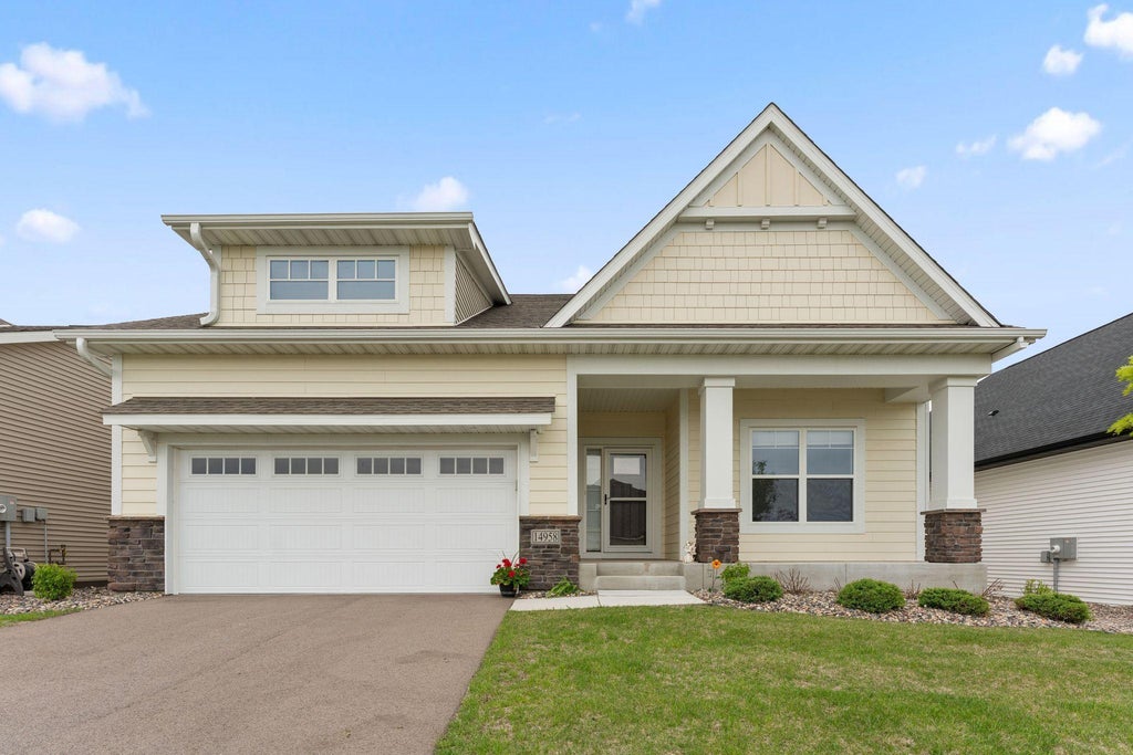 Incredible opportunity to own a nearly new home, fully upgraded home without the wait or the higher price tag of building today. Located in the up-and-coming Amber Fields neighborhood, this beautifully appointed rambler offers over $100k in upgrades and the perfect blend of comfort, functionality, and style. The welcoming oversized foyer leads into an open-concept layout where the family room, kitchen, and dining area flow seamlessly together. Enjoy a cozy gas fireplace in the family room, a large kitchen island, a walk-in pantry, and stainless steel appliances. Just off the main living area, a light-filled four-season sunroom offers the perfect spot to relax, with large windows and a sliding glass door that invite the outdoors in while maintaining year-round comfort. The spacious Primary suite is a true retreat, featuring a separate soaking tub, a walk-in shower, and a generous walk-in closet. The finished lookout basement expands your living space with a large third bedroom, a 3/4 bathroom, and an impressive walk-in wet bar with granite countertops. An extra-large storage room and an oversized garage, spacious enough to fit three cars, complete the home. Set in an association-maintained community, you'll enjoy the ease of lawn care, snow removal, and trash/recycling services. Welcome to low-maintenance living in this stylish and functional 3-bedroom, 3-bath home. Amber Fields is one of the area's most exciting new neighborhoods, with over five miles of trails, community parks, and close proximity to grocery stores, retailers, fitness centers, coffee shops, and restaurants. Just 25 minutes from the airport.