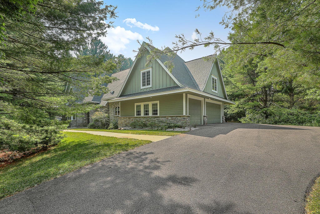 Welcome to your dream retreat—a custom-built walkout Ranch style home nestled on 2.5 acres of serene, landscaped countryside. Thoughtfully designed and masterfully constructed, this home combines elegance, functionality, and peace of mind in every detail. As you approach, you're greeted by striking architectural elements—cement board siding accented with natural stone, boulder and granite retaining walls, and new architectural shingles installed in July 2025. A wide asphalt driveway leads to the oversized, fully insulated three-stall garage, complete with hot and cold water, floor drain, in-floor heat, built-in cabinetry, and belt-drive openers for quiet convenience. There’s even attic storage above—an impressive 17’ x 34’—along with double closets and finished walls that make the garage an extension of the home itself. Double front entry doors open into a warm and inviting interior where craftsmanship is immediately evident. Hardwood floors run through the foyer, hallway, kitchen, dining area, and main-level powder room. The living room, featuring a gas fireplace with a stone surround and custom built-ins, is the heart of the main level, adorned with crown molding and recessed lighting that carries throughout the home. Just off this space is one of two decks—this one overlooking a private, wooded backyard that’s part of a fully landscaped lot serviced by a 13-zone in-ground sprinkler system. The kitchen is a true chef’s delight with custom cabinetry, granite countertops, stainless steel appliances, tiled backsplash, double ovens, built-in flat-top cooktop, and a massive island housing the sink, dishwasher, outlets, and additional storage. A walk-in pantry is adjacent to a second deck complete with a built-in gas grill, perfect for entertaining. Retreat to the primary suite where comfort meets sophistication. A tray ceiling with recessed lighting and built-in speakers sets the tone, while electric in-floor heat, a walk-in closet with a pocket door, and a spa-like bathroom offer true luxury. Marble tile floors, a deep soaker tub, dual vanities, and a large tiled walk-in shower with multiple sprayers and a bench create a private oasis. A second main-level bedroom suite includes crown molding, a walk-in closet with organizers, and a private full bath with granite countertops and custom finishes. Function meets form with a main-level laundry room featuring front-load LG washer/dryer on built-in storage drawers, custom cabinetry, and granite counters. Central vacuum makes maintenance easy, and security features like cameras, recessed soffit lighting, and a Ring doorbell bring peace of mind. The finished lower level is nothing short of spectacular, accessed by two stairways with wall sconces for evening visibility. Entertain effortlessly at the custom wet bar with granite countertops, dishwasher, and fridge. Relax in the family room, complete with another stone-surround gas fireplace and custom entertainment center, or explore the fully outfitted wine cellar with tiled floors and custom cabinetry. Three additional bedrooms downstairs include walk-in closets and share a beautifully designed three-quarter bath with walk-in tiled shower and separate stool area. The lower-level laundry/kitchenette offers even more versatility with a built-in cooktop, microwave, sink, cathedral-style oak cabinetry, and tiled floors. Discover a lower-level workshop with built-in bench, storage nook, and dust vacuum collector—ideal for any hobbyist. Multiple mechanical rooms house top-of-the-line systems: a 2024 Viessmann water heater for in-floor heating, dual furnaces with Aprilaire humidifiers, a Kinetico water softener, two 200-amp breaker panels, and a natural gas-powered Generac generator capable of powering half the home during outages. With three A/C units and zoned heating, year-round comfort is assured. This rare gem blends country serenity with luxurious living, offering a lifestyle that’s both tranquil and incredibly well-equipped.