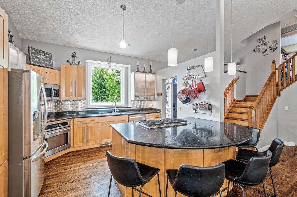 This stunning home offers over 3,000 sq. ft. of beautifully updated living space and an open-concept floorplan. The main level features gleaming hardwood floors, a cozy fireplace, and a fully remodeled kitchen with stainless steel appliances. The luxurious primary suite is a true retreat, boasting custom tile work, heated floors, and an incredible walk-in shower. The versatile fourth level currently serves as a rec room but can be tailored to suit your needs. Step outside to a private backyard oasis complete with a deck and sport court—perfect for entertaining. Enjoy peace of mind with numerous recent upgrades, including new furnace, AC, windows, siding, roof, and a heated garage. Conveniently located just minutes from highways, shopping, and downtown.