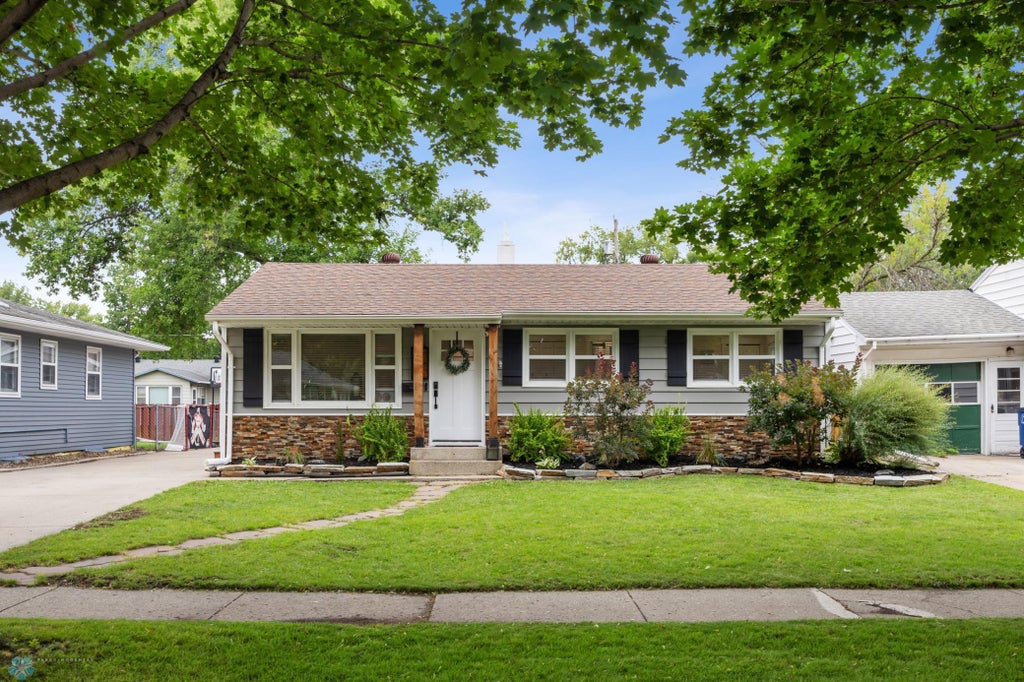 This North Moorhead rambler has it all—stunning updates, standout style, and a backyard that feels like a private retreat. From the moment you pull up, the curb appeal shines with steel siding, stone accents, cedar beams, and meticulous landscaping. Inside, the main floor features three bedrooms and a beautifully updated full bathroom, plus a cozy living room with a statement fireplace and accent wall. The kitchen is fully refreshed with newer cabinets, countertops, backsplash, appliances, lighting, and more—offering both modern convenience and classic warmth. Off the dining area, French doors lead to a dreamy, fully fenced backyard with a pergola, stone patio, fire pit, and deck. And just wait until you see the basement. With a gorgeous stone fireplace, accent wall, and a second spacious living area, it’s perfect for relaxing or entertaining. The lower-level bathroom is equally impressive with gorgeous finished including the tiled shower. New Window AC units (2025) but ductwork is in place for easy central air install! Request the full list of updates to see all the *New* you'll get in this 1960's home! Every inch of this home has been thoughtfully updated. Stylish, functional, and move-in ready—this one is a must-see.