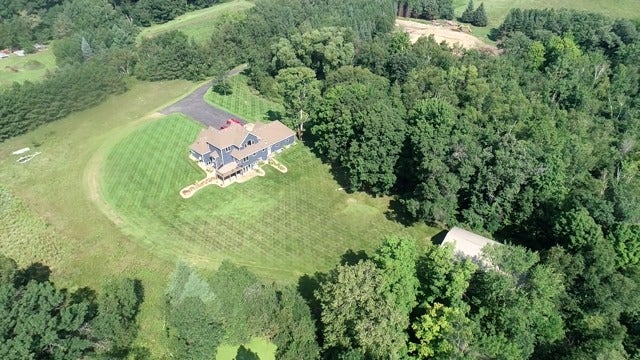 Discover your own slice of countryside paradise in this stunning 4-bedroom, 4-bathroom home spanning 4,302 square feet of beautifully crafted living space. This property sits on a generous wooded lot that feels like your personal nature preserve, making it a true hunter's paradise for outdoor enthusiasts. Step inside to find Craftsman-style interior door trim and an impressive two-story foyer featuring an elaborate wooden staircase that serves as a work of art. The spacious kitchen beckons culinary adventures, while the formal dining room sets the stage for memorable gatherings. Cozy up by the gas fireplace in the living room, or retreat to the luxurious primary bedroom suite on the main level, complete with heated towel bar, whirlpool tub, tile shower with glass door, and even a television built into the mirror. Recent updates shine throughout, including new windows, doors, and James Hardy Board low maintenace siding installed in 2020, plus updated lighting that brightens every corner. The finished walkout lower level expands your entertainment options, while the bonus game room above the three-car heated garage provides extra flex space. Eco-conscious features include geothermal heating, ensuring year-round comfort while keeping energy costs manageable. The property also boasts a new deck perfect for morning coffee or evening relaxation, plus a practical pole building for storage or workshop needs. Upper bedrooms share a convenient jack-and-jill bathroom arrangement, and custom window treatments add refined touches throughout. The private driveway ensures peaceful seclusion while remaining conveniently accessible to local schools, parks, and amenities. This exceptional property seamlessly blends modern comfort with rustic charm.