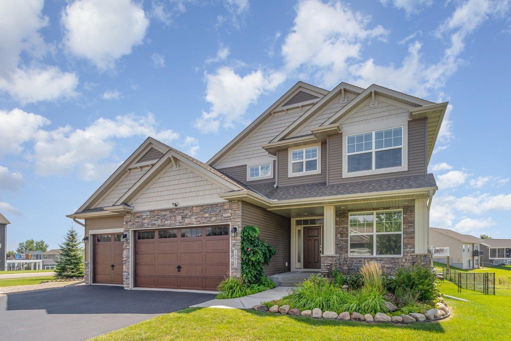 Experience luxury living in this stunning custom-built 2018 Benzinger Homes gem, offering exceptional upgrades and thoughtful design throughout. Spacious & Refined Living 5 bedrooms, 4 baths over 3,000 sq ft, ideal for growing families or hosting guests. Main level showcases an open-concept layout with a welcoming living room anchored by a gas fireplace, flowing into a gourmet kitchen. Kitchen highlights include granite countertops, a large center island, a KitchenAid dishwasher, tile backsplash, a spacious pantry, and custom cabinets. A dedicated home office/den and a convenient half-bath complete this floor. Elegant Upper-Level Luxurious primary suite with dual vanities, private water closet, and walk-in tiled shower with dual heads, plus a large walk-in closet. Three additional generous bedrooms and a shared main bath featuring dual sinks. Added the convenience of a laundry room with sink and cabinetry. Entertaining Lower Level. Finished in 2024 with a family room, 5th bedroom, full bath, and second laundry area. Fully fenced corner lot 0.35 acres with mature pine trees, garden beds, front porch, deck, and patio for outdoor enjoyment. Nestled in the Crimson Ponds West subdivision of Otsego, this home offers proximity to parks, shopping, restaurants, and easy access to schools. Fresh interior paint and touch-ups throughout 2025 ensure move-in readiness. Book A showing and check it out today.