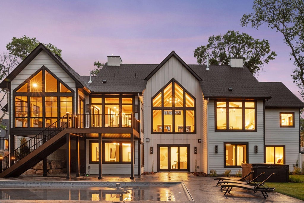 Exceptional custom rambler by TJB Homes on 3.35 private acres in Hidden Forest East. This 5BR, 3BA home offers nearly 5,000 SF of luxury living with vaulted beamed ceilings, full wall of windows, and panoramic wooded views. Chef’s kitchen with butler pantry, oversized island, and premium appliances flows into great room and 3-season porch with fireplace. Spa-like owner’s suite with dual rain shower and custom built-ins. Lower level features wet bar, media/game area, 4 bedrooms (including hidden room), and walkout to heated pool and hot tub. 4-car heated garage with epoxy floors. Top-tier finishes throughout. Executive-grade privacy just 30 minutes from the metro. Blaine schools. Parade-model quality inside and out.