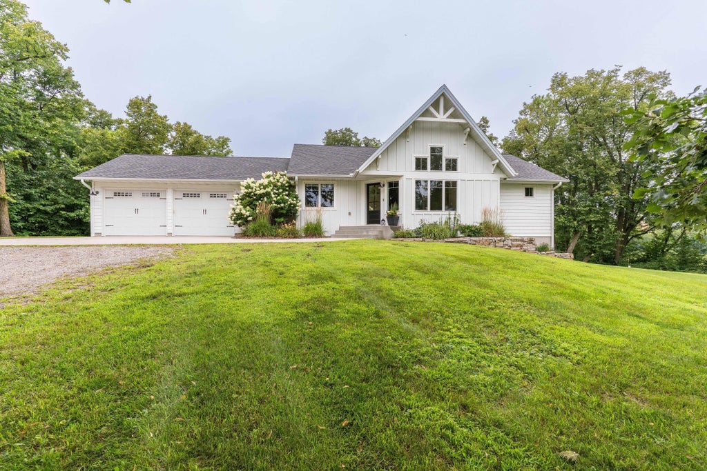 This stunning 4-bedroom, 3-bath modern farmhouse feels like it came straight out of a magazine. Perfectly nestled among mature trees on 10.5 acres, the property offers sweeping views and abundant wildlife — all just 10 minutes from town and close to Jewett and Long Lake. Step inside and be greeted by vaulted ceilings, rich wood floors, and a stunning grand wood burning fireplace. The stylish and functional kitchen features granite countertops, a walk-in pantry, prep sink and stainless steel appliances. The private primary suite is it's own oasis with a spa-like tiled shower and spacious walk-in closet with a separate laundry. The sunroom, with floor to ceiling windows invites natural light and shares a cozy see through wood-burning fireplace with the living room, creating a warm and inviting gathering space. The well thought out floor plan features a functional mudroom with a built in desk and half bath conveniently located right off of the heated and insulated garage. The walk-out lower level boasts stained concrete floors, an inviting family room/rec room with a built-in desk, perfect for a home office or children's play area, three additional bedrooms with large closets, a beautiful full bathroom, laundry room, and a generous storage room. Outdoor living is just as impressive, with a welcoming patio for entertaining and grilling, a quaint little play house, and a handy storage shed for tools and hobbies. Home features a central vacuum system, SmartSide siding, dual fuel in-floor heat, an R/O system, a radon system and a newer well pressure tank. With its thoughtful design, high-end finishes, and serene acreage, this home is the perfect blend of modern style and country charm.