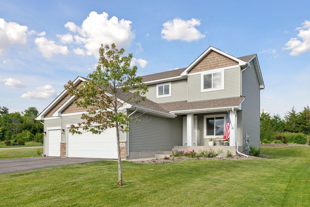 Step into this stunning two story home, built in 2018 by Drake Construction. The large front porch provides the perfect first impression upon entry. You’ll love the open concept on the main level. The kitchen has gorgeous cabinetry and the oversized island offers extra seating and all the prep space one could wish for. Brand new carpeting runs throughout the home, giving it a fresh and move-in-ready feel. The upper level was thoughtfully designed to include all three bedrooms and the laundry room for ultimate convenience. Enjoy the Private Primary En-suite, with views of the private backyard. Easily add your own finishing touches in the unfinished lower level and gain instant equity! Nestled on a spacious, corner lot, the yard has ample room for play while providing privacy. You’ll love the flawless landscaping, showcasing the perfect spot for your flower garden. Needing extra storage? Enjoy the perfectly placed storage shed in the backyard.