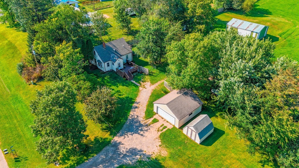 Charming house on 10 Acres with multiple outbuildings ideal for hobby farm or one who loves wild-life and privacy yet convenient location! Small pond for deer, cranes, former chicken coop, hog bar, 2 garages and garden shed for storage, former smoke house, fire pit area and many mature trees plus pasture/field for either hunting or raising animals of your own! Fenced area for pets off deck, welcoming front deck and mud room, kitchen cabinets just repainted, formal dining room, comfortable living with bedroom, bathroom and laundry on the main floor plus 2 other bedrooms upstairs and full unfinished basement. Some updates over the recent years include new propane furnace, water heater & softener, water lines, toilet, some carpeting, cedar planked ceiling, painting & added 2 sump pumps & drain tile to basement.