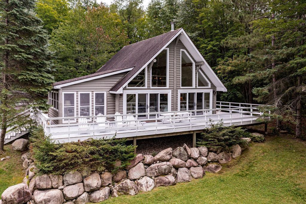 A heavenly haven on the most desirable location on Pokegama Lake. This cabin is one of a kind in the north woods. A year round cabin that is serenely appointed to transport you to a peaceful retreat or stunning year round home. Down a private driveway, this 2 bedroom, 1.5 bath home has a beautiful sleeping loft that allows you to see the lake when you wake up in the morning. Downstairs there is a cozy bedroom and bath. An open floorplan includes a cook's kitchen with Wolf range, farmer's sink and ample cooking and eating space, dining area, living room with a gorgeous wood burning fireplace, as well as a comfy separate media alcove. A wraparound deck overlooking the lake, perfect for entertaining. There is a bunkhouse on the lake where you can fall asleep to the waves lapping on the shore after taking a sauna and swim. The house is decorated from Design Within Reach, Ligne-Roset, Arte de Mexico and thoughtfully curated vintage pieces. It is truly one of the most special places you can find.