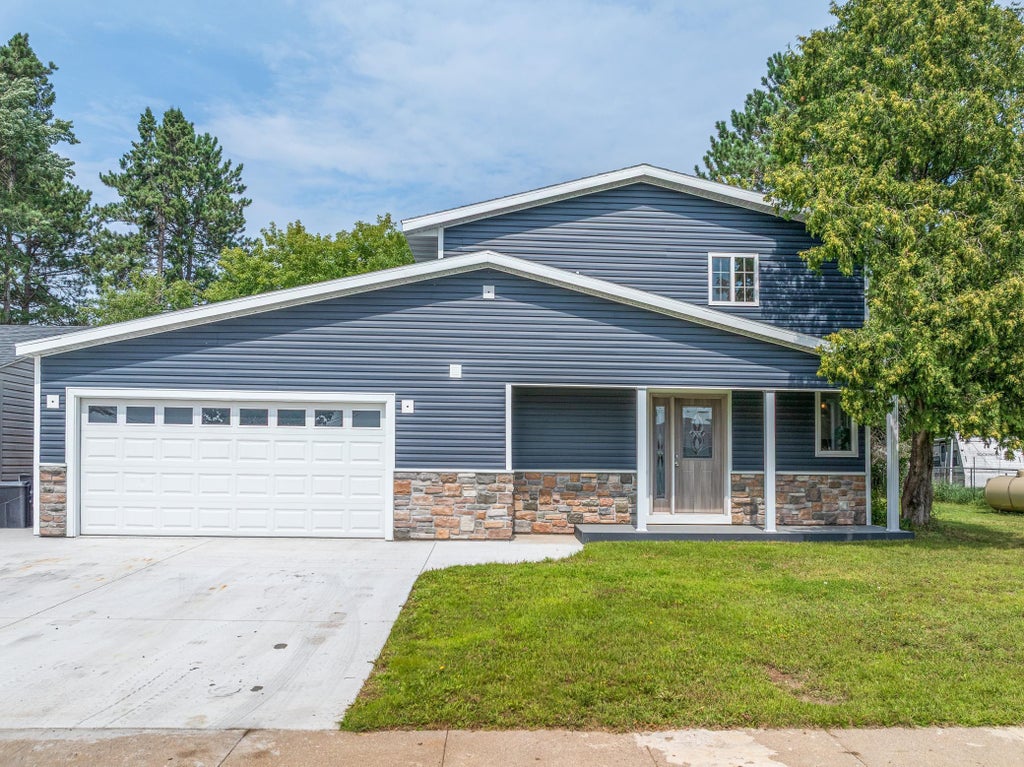 Step into this stunning 1,500+ sq ft home that has been completely remodeled from top to bottom! The main floor offers an open-concept design with a spacious kitchen featuring an island with a butcher block top, brand-new cabinetry, counters, and stainless steel appliances. The dining and living areas are centered around a cozy electric fireplace with sliding doors leading out to the back deck. A handy 1/4 bath and an attached 3+ car garage—larger than most at 20x35—add extra function and style. Upstairs, the primary bedroom suite is a true retreat with a clawfoot tub, walk-in shower, and stylish vanity. Two additional bedrooms, a full bathroom, and even a 2nd-level laundry make life easy and convenient. This home is loaded with updates, including a new energy-efficient propane furnace, fresh finishes throughout, and thoughtful touches inside and out. A covered front porch, cultured stone accents, and back deck complete the curb appeal. With everything brand new, you couldn’t build it better for the price—this one is move-in ready and waiting for you!