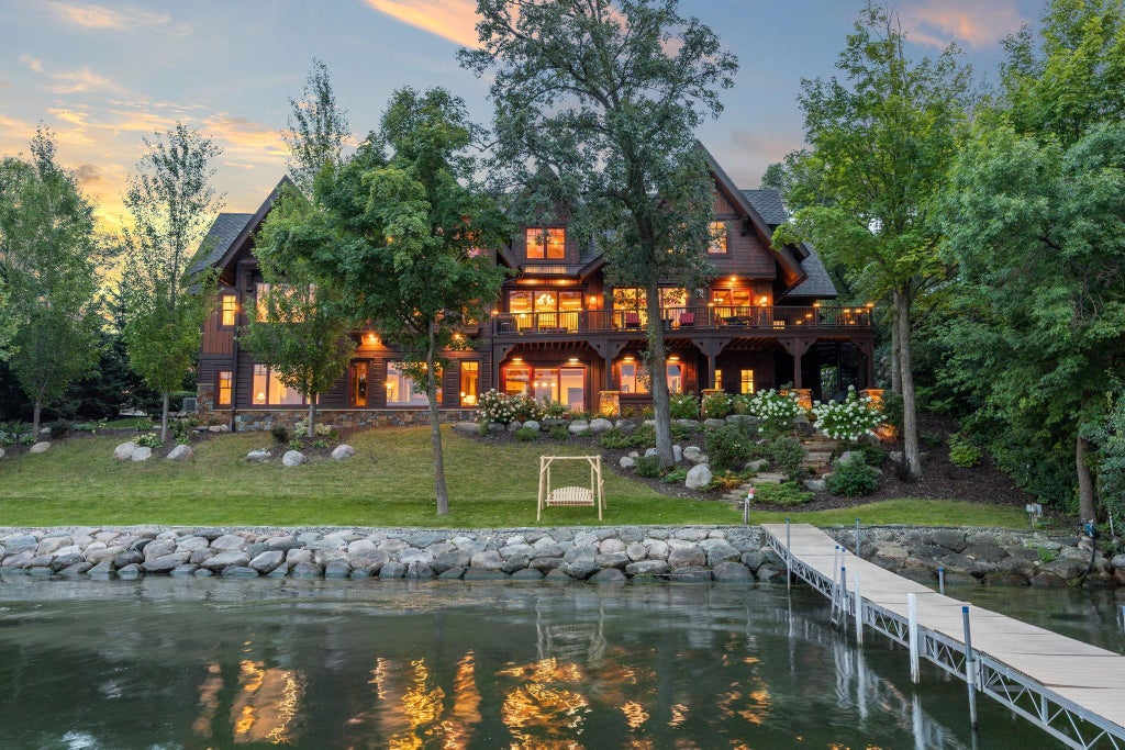 This stunning custom-built Douglas Fir timber-frame lake front retreat offers 139’ of prime Lake Waconia lakeshore and unmatched craftsmanship throughout. From the 26’ vaulted entry to the maintenance-free lakeside deck with spiral staircase, every detail is designed for elegance and comfort. Highlights include 4+ bedrooms, 6 baths, a chef’s kitchen with Thermador appliances, a main floor primary suite with its own fireplace and spa-like bath, laundry on all three levels plus media room with stadium seating, rec room with wet bar and sunken family room with fireplace. Enjoy modern conveniences with an elevator, whole-house generator, in-floor heat and finished heated garages and so much more. Attention to detail throughout. Sold fully furnished and move-in ready, this turn-key property blends luxury, functionality and lakeside serenity.